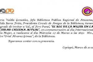 El día 8 de Marzo se celebra en todo el país el día de la mujer, y la Biblioteca Pública Regional no ha querido quedar ageno ha esta celebración.Este año hemos querido celebrar la Semana de la mujer con diferentes actividades, teniendo como actividad de cierre un foro paneldenominado ¨El Rol de la...