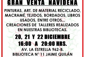 las Bibliocas Públicas de Pudahuel han realizado diversos talleres para ello se realizara un feria navideña para ezxponer todas las creación elaboradas en cada actividad.