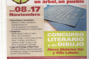 La Biblioteca pública junto a la sala de exposición de Artesanos se hace parte del concurso literario y de dibujo Alerce histórico sur y Villa Lahuen ya que es centro de inscripcion y retiro de las bases del concurso . Categorias a participar: -niños: desde 5 hasta 12 años tema : "Asi es mi...
