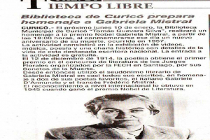 Con Motivo de conmemorarse un nuevo aniversario de su muerte, la Biblioteca municipal, realizará un homenaje el día Lunes 10 de Enero a las 18:00 horas. En nuestras dependencias ubicada en Calle Estado 498 curicó.
