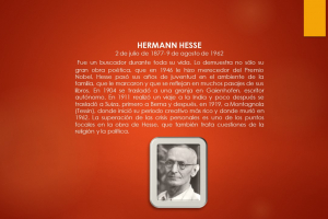 HERMANN HESSE2 de julio de 1877- 9 de agosto de 1962 Fue un buscador durante toda su vida. Lo demuestra no sólo su gran obra poética, que en 1946 le hizo merecedor del Premio Nobel, Hesse pasó sus años de juventud en el ambiente de la familia, que le marcaron y que se reflejan en muchos...