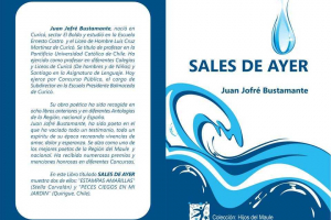 Este jueves 16 de Diciembre, a las 20:00 horas, en la Biblioteca Municipal de Curicó Tomás Guevara Silva, se presentará el libro de poesía Sales de Ayer del escritor y poeta, el profesor Juan Jofré Bustamante, subdirector de la Escuela Balmaceda de Curicó. El evento cultural contará con...