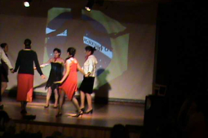 Los alumnos de cuartos medios del Complejo Claudio Arrau Leon exponen en el escenario de la biblioteca las danzas de latinoamerica en especial las de Brasil , como Lambada , zamba y otras, sus comidas y trajes tipicos de el país vecino.