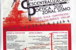 Con fecha 14,15,21,22 y 23 de octubre 2010, se está llavando a cabo la descentralización Poética Zonal sismo en las ciudades de Curicó, Iloca, Constitución, Concepción, Pemuco, Chillán. Dicha actividad consiste en temas relacionados con la Poesía, Música, Arte, Amistad