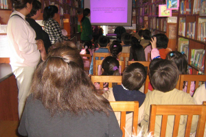 Charlas con el Odontologo Sr. Felipe garrido, pasa una pelicula llamada "muelitas". Expone ¿como cuidarse los diente, el cepillado cuatro veces al día.