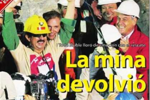 Celebrando el éxito del histórico operativo para rescatar a los mineros atrapados en la mina San José, cuando ya son 12 los trabajadores que han salido a la superficie, tras 70 días encerrados a 700 metros de profundidad.