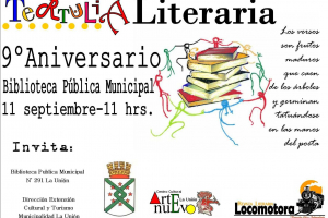 El día sábado 11 de septiembre con motivo de la celebración del 9° aniversario de la Biblioteca Pública Municipal, se llevara a cabo una tertulia literaria a las 11:00 horas en dependencias de la biblioteca.