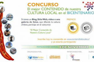 Si tienes un blog, un sitio web, una galería de fotos o video que difunda la cultura chilena, o personaje típico de nuestra comuna, te invitamos a participar en este concurso inscríbete ingresando a www.contenidoslocales.cl no olvides mencionar que perteneces a la Biblioteca 102 Cerro...