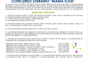 En el marco de la 7a FERIA DEL LIBRO Maipú un libro abierto en la historia de Chile; la Municipalidad de Maipú, convoca al concurso literario Mama Icha, en homenaje a la escritora de nuestra comuna, Sra. Elisa Ferrada Ferrada y como una manera de incentivar y promover la escritura como...