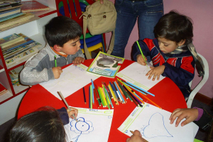 Martes a las 17:30hrs.Las actividades de los niños son dibujar y crear pequeños títeres que van insertos en dedos de los niños.