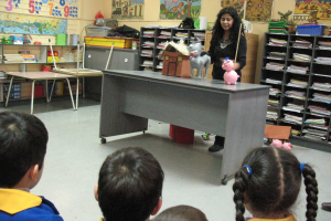El Colegio Reina de Suecia con 2 Kínder y un octavo básico y el Colegio El Llano con un Kínder y un primero básico, en total 120 niños, tuvieron la oportunidad de presenciar el cuento con títeres Los tres Cerditos realizado por la conocida y prestigiosa titiritera Elizabeth Guzmán.