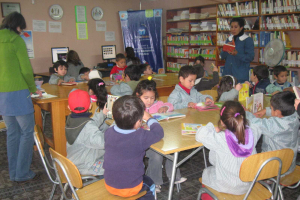 El curso de 5° Básico del Liceo Parroquial Teresita de los Andes, visita la Biblioteca N°233 de Rinconada, haciendo regalo en el día del Libro con un Poema "Piececitos de Niño" de la Poetiza Chilena Gabriela Mistral, recitado por los alumnos