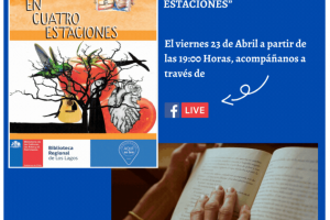 En el mes del libro la Biblioteca Regional de los Lagos tiene el agrado de presentarles el lanzamiento de la revista digital, del taller de poesía “LETRAS EN CUATRO ESTACIONES”.Los invitamos a unirse a través de nuestro Facebook y poder ver en vivo esta transmisión.