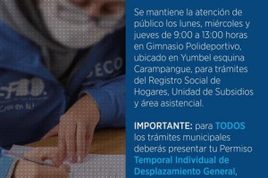 Se mantiene la atención de público para trámites de: Registro Social de Hogares. Unidad de Subsidios. Área asistencial.PERO, no olvides llevar tu permiso