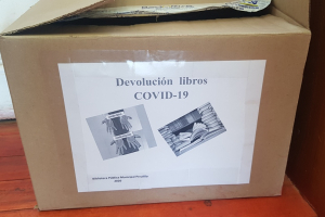 Los usuarios que están en devolución de libros, se están guardando en una caja de cartón, en un rincón de dicho lugar, antes de ponerlos en estanterías, modo de reducir la posibilidad de contacto del Covid-19 a los demás lectores, que visitan nuestra Biblioteca Municipal ...