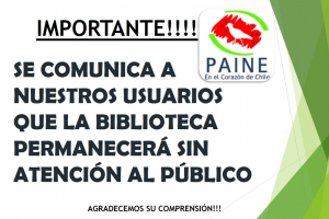 A nuestro usuarios se les informa que debido a la contingencia nacional y mundial, la Biblioteca está sin atención al público, los funcionarios están cumpliendo turnos éticos y además de teletrabajos, es decir, si necesitas renovar el material bibliográfico que se encuentra en su domicilio, lo...