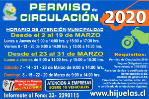 Permisos de Circulación 2020 Municipalidad de HijuelasHorario, contacto y requisitos en imagen adjunta.