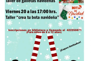 TALLERES NAVIDEÑOS EN TU BIBLIOTECA PUBLICALa Navidad llega a nuestra biblioteca con los talleres “galletas de navidad y crea “Tu bota navideña”, a partir de las 17:00 hrs., los días 19 y 20 de diciembre, respectivamente.