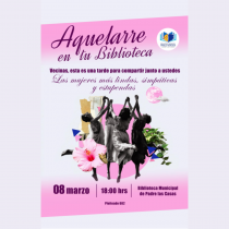 Este miércoles 8 de marzo la Biblioteca Pública Municipal invita a las mujeres de Padre Las Casas a una velada con diferentes actividades artísticas y culturales a las 18:00 horas en el salón principal.Invitamos a todas las mujeres al "Aquelarre en tu biblioteca", velada en la que tendremos música...