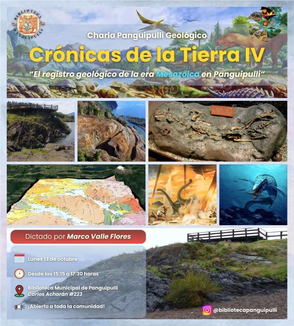 Te invitamos a participar en este ciclo de charlas organizado en la Biblioteca Municipal para comprender Panguipulli desde una mirada geológica, descubrir los secretos que guarda el pasado de la Tierra, sus procesos y su evolución a través de millones años hasta forjar el diverso y majestuoso territorio en el cual habitamos actualmente.