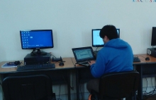 Usuario trabaja con su notebook y el pc de Biblioredes