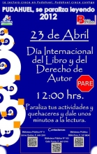 Como es habitual todos los años, en esta nueva celebración del Día Internacional del Libro y del derecho de autor, invitamos a todos a que se sumen a la Iniciativa de PARALIZAR PUDAHUEL CON LA LECTURA, esta actividad tiene como finalidad paralizar todas las actividades que estemos realizando, y tomarnos 5 minutos para disfrutar de una lectura, la cual puede ser en cualquier medio o formato (libros, diarios, revistas, en digital, etc.).