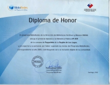 Un año más la Biblioteca Pública Municipal N° 209 de la Isla Lemuy ,Comuna de Puqueldón ha recibido "Un Diploma de Honor", otorgada por el Programa Biblioredes año 2009, por haber cumplido todas sus Metas propuestas por este Programa, superando el 120% de lo asignado.