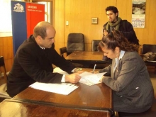 Evelyn Soto Nonquepan, presidenta de la Agrupacion de Amigos de la Biblioteca Pública N° 199, de la comuna de Puyehue, recibió de manos del gobernador cheque, para la ejecución del Proyecto, durante el mes de diciembre y enero 2012.