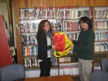 Donación a Biblioteca Pública de Queilen de bolsas de tela pertenecientes a campaña "Queilen sin bolsas plásticas".