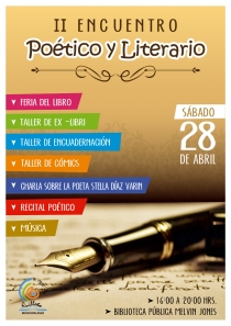 Los invitamos a celebrar con nosotros el #mesdellibro (día internacional del libro 23 de abril), con una gran celebración en el "II Encuentro Poético y Literario" en la Biblioteca Pública 83 Melvin Jones de Quillota. Tendremos... Feria del Libro: exposición y venta de libros...