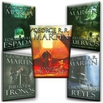 Quinto libro de la saga "Canción de hielo y fuego". Narra los acontecimientos posteriores al tercer libro "Tormenta de espadas" y simultáneos a los acaecidos en el cuarto, "Festín de cuervos".
