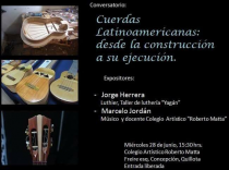 Este miércoles 28 de junio, el luthier Jorge Herrera y el músico Marcelo Jordán ofrecerán un conversatorio en el cual hablarán sobre el proceso de construcción de instrumentos de cuerda latinoamericanos y sobre conceptos básicos de selección y reconocimiento de instrumentos por parte del ejecutante...