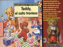 Teddy, el osito travieso un cuento para niños de aventuras de ositos de peluche que cobran vida en una juguetería.Este libro viene con un sorpresa para los pequeños, si la quieres descubrir ven a la Biblioteca de Quillota.