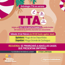 Queremos informarles que el sábado 19 de febrero estará en la Plaza de los Deportistas el TTA Móvil realizando Test PCR Gratuitamente.