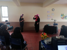 Dentro del marco de la celebración del Mes del Libro, hoy nuestras Cuenteras visitaron el "Colegio Marta Brunet". De Punta de Cortés. Donde les relataron un cuento muy entretenido
