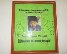 En la Sala de Circulación se destaca en un Cuadro de Honor al usuario Nagual Agurto Márquez. Como el Mejor Lector en el Mes de abril.