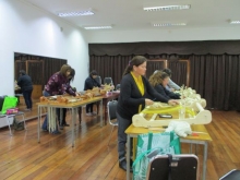 Las integrantes de la “Organización Rescatando Nuestras Raíces”; se reúnen en la Biblioteca los días viernes, donde desarrollan distintas técnicas de manualidades.