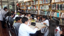 Durante esta mañana los alumnos de 4º Básico del Colegio San Angelo de Rancagua, vinieron a conocer nuestra Biblioteca y una manera de acercarlos a la lectura, realizaron en la Sala de Referencia Fichas Bibliográficas de un Libro que eligieron a su gusto.