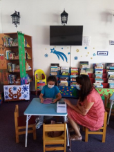 Recibimos la visita de Andrea y su hija Rafaela, querían conocer nuestra Biblioteca y disfrutar un rato de lectura.