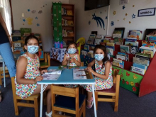Las hermanas Aurora, Sara y Elena Lantadilla Orueta, querían conocer la Biblioteca y disfrutar el rincón infantil.