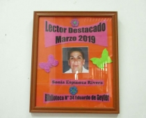 Este mes en el “Cuadro de Honor” de la Sala de Circulación se destaca a la usuaria Señora Sonia Espinoza Rivera; como la Mejor Lectora del mes de Marzo 2019.