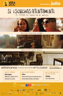 Sigue ciclo de documentales chilenos, desde el sábado 23 de Julio MIRADOC, presenta nuestra Biblioteca "SI ESCUCHAS ATENTAMENTE" de Nicolás Guzmán.16:00 hrs. La entrada general es de $ 1.000 y estudiantes $ 500.Los esperamos!
