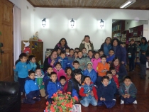 A pesar del frío de esta mañana los alumnos del "Colegio Buen Pastor", nos visitaron para escuchar el entretenido cuento "Bernardo y Canelo" a través del Kamishibai, ellos no conocían la Biblioteca y se entusiasmaron mucho al ver tantos libros y tener la oportunidad de poder tocarlos.