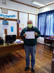 Don Atricio Escanilla; recibiendo su Diploma por realizar el curso de Alfabetización Digital. Ven a inscribirte a la Biblioteca.