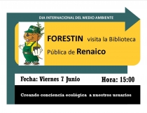 Con motivo de Celebrar el Día Internacional del Medio Ambiente la Biblioteca Pública de Renaico, junto a CONAF, Provincia de Mallleco, preparan la visita de Forestín Conaf Región de la Araucanía, para los niños usuarios de la Biblioteca, los cuales plantaran arboles nativos para hermosear la...