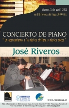 El 01 de Abril de 2011, se realiza un Concierto de Piano en manos Del profesor y músico Don José Riveros.