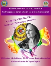 El día 15 de Mayo a las 19:00 horas en el Teatro Municipal se realizó la actividad “Sanación de los cuatro mundos” tema desarrollado por la Terapeuta, tarologa y psicomaga Gabriela Rodrìguez de vasta trayectoria, formada en la Universidad de Chile. Con motivo de celebración del aniversario Nª 48 de la Biblioteca Pública Municipal “Salvador Correa Ovalle”.
