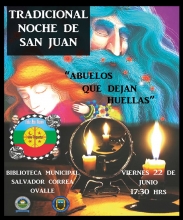 Tradicional Noche de Juan "Abuelos que dejan huellas", realizada el viernes 22 de Junio en la sala de lectura de la Biblioteca "Salvador Correa Ovalle". Actividad enfocada en el rescate de mitos, leyendas y costumbres. Este año fue organizada en conjunto con usuarios de la Biblioteca.