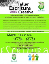 Este taller es un laboratorio de Escritura Creativa, conducente a módulos de Periodismo Escolar y Periodismo Comunitario. Se usaran diversas técnicas para estimular la lectura y la creación literaria, posibilitando ejercicios libres para la comunicación de espacios comunitarios. Se entregarán de este modo las herramientas (Técnicas) y nociones (Conocimientos) del periodismo escolar y el periodismo comunitario.
