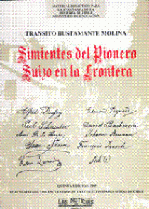 Simientes del pionero Suizo en la Frontera del autor Tránsito Bustamante Molina, segunda edición 1991, 270 páginas editadas por la Sociedad Periodística Las Noticias de Victoria, Chile, es declarado Material de Consulta...